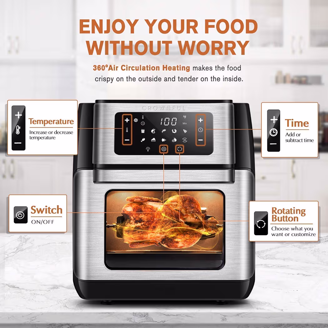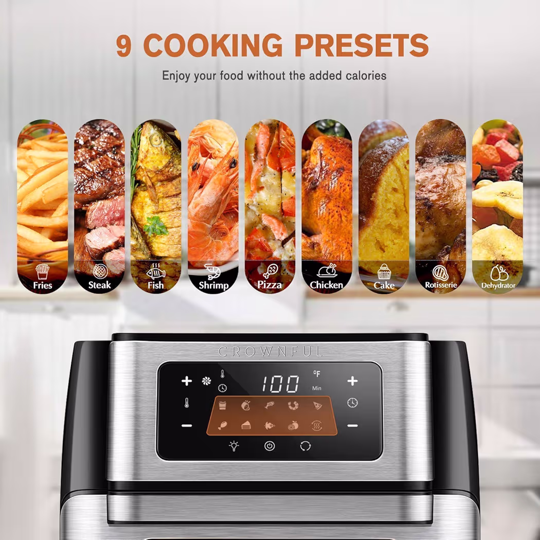 Be the first to review “CROWNFUL 9-in-1 Air Fryer Toaster Oven, Convection Roaster with Rotisserie & Dehydrator & 32 Quart Air Fryer Oven”