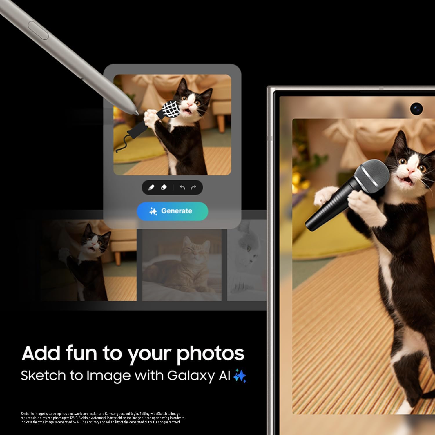 Do more with the most epic Galaxy yet. Wondering where the cool museum that your favorite influencer visited is located? Simply Circle to Search1 with Google and start planning your own trip to the Louvre. Then get ready to experience local flavors by calling ahead with Live Translate3 to make a reservation in French, even if all you know is “Bonjour.” Capture every detail of your candlelight meal with impressive Nightography and zoom in to see the live violinist playing across the room. Once you’re back in your hotel, elevate your pics from good to great right on your S24 Ultra. You can even use your built-in S Pen to add fun doodles before posting. Unleash new ways to create, connect and more with S24 Ultra. Epic, just like that.
